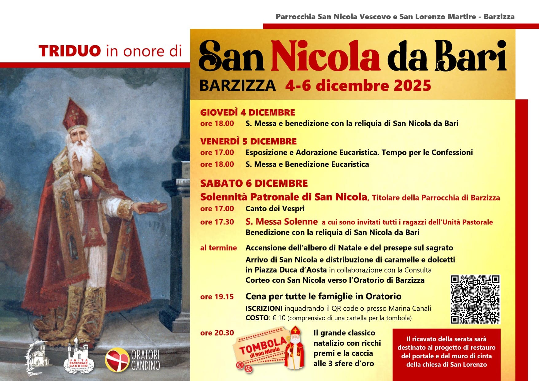 Dal 4 al 6 dicembre 2025, la comunità di Barzizza si raccoglie attorno alla figura di San Nicola da Bari, patrono della parrocchia, per vivere insieme tre giorni di preghiera, riflessione e gioia condivisa.