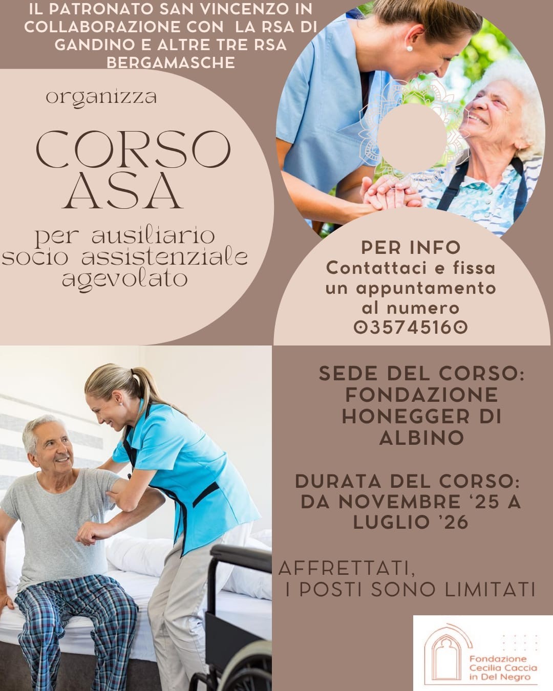 Il Patronato San Vincenzo in collaborazione con la RSA di Gandino, in collaborazione con altre RSA della provincia, promuove il Corso ASA